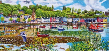 Geniet van dit panoramische tafereel van een prachtige Schotse haven in deze 636 stukjes tellende puzzel van Roger Neil Turner.